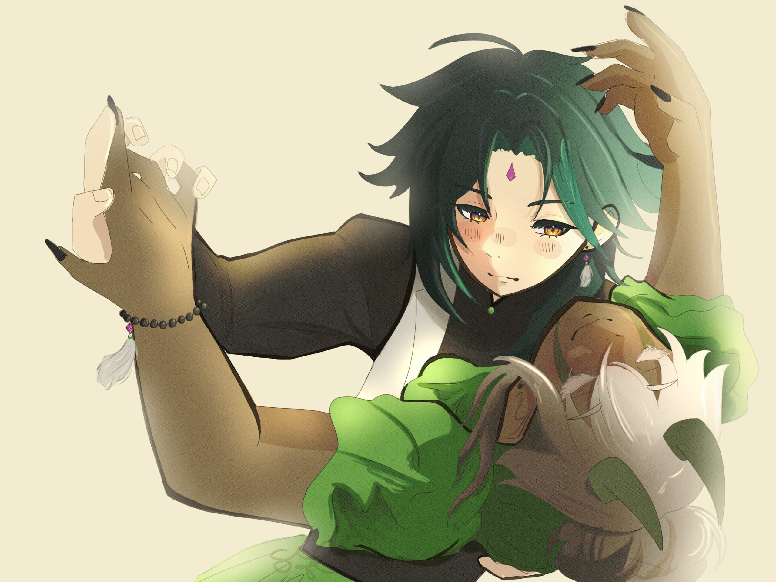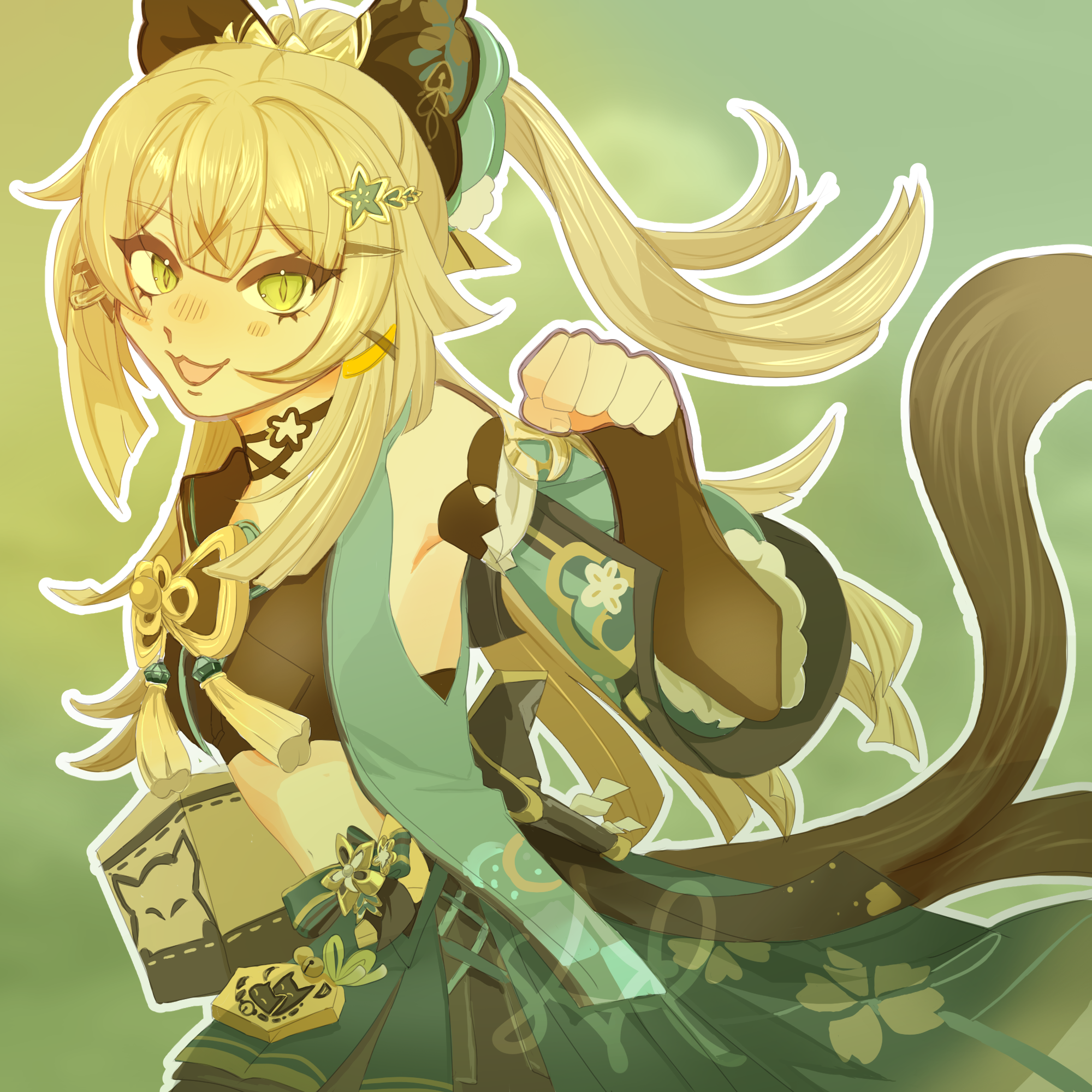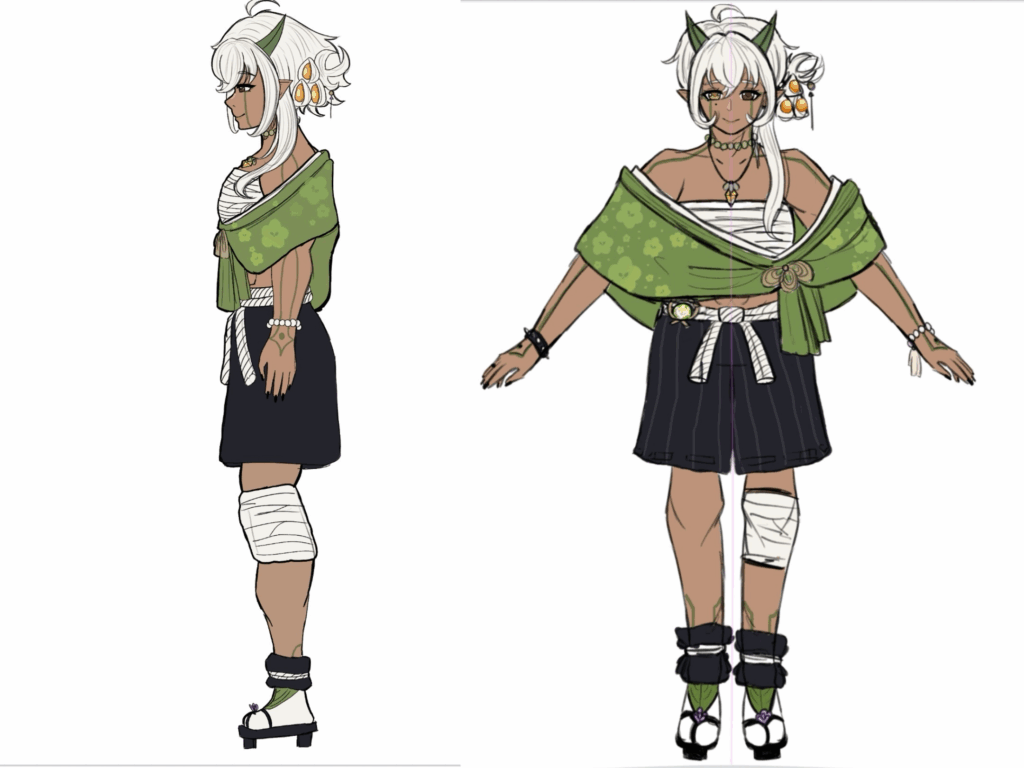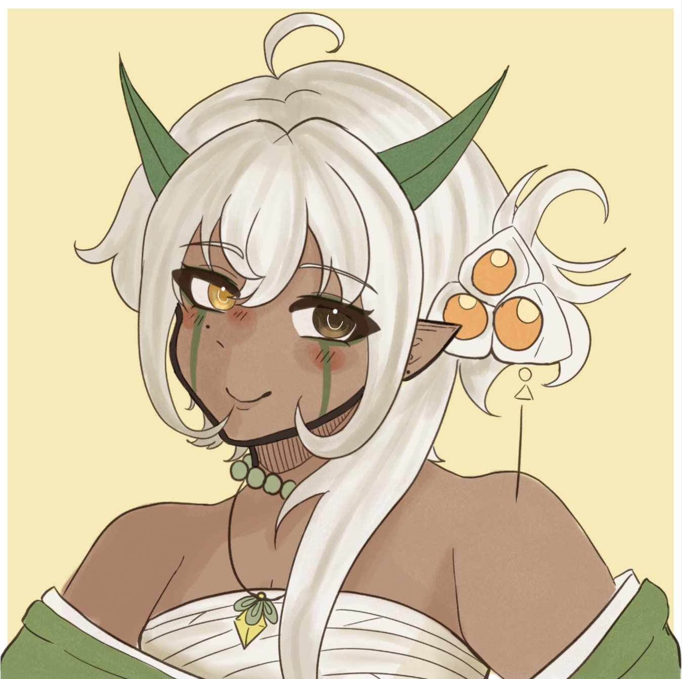 Aishi is a fan character for the video game „Genshin Impact“ by Hoyoverse. She is an Oni from the region Inazuma and holds a Dendro Vision. In her (in development) storyline, she moves to the region of Liyue to open up a jewelry shop. She offers hair pins, necklaces, bracelets, rings and more. She lives now near a mine where she collects gems and ore herself. She uses a polearm to defeat enemies.